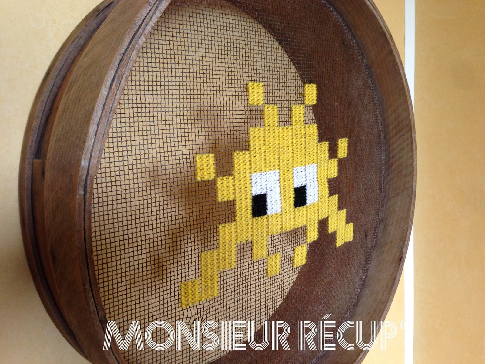 Moi qui suis brodeuse au point de croix, et ne sachant pas trop quoi faire du tamis de mon père maçon, comment n'ai-je pas eu cette idée fabuleuse, j'ai un stock de fils à scoubidous, alors si je vous prends l'idée vous voulez bien ?. Un bien joli rendu toujours, j'aime beaucoup.