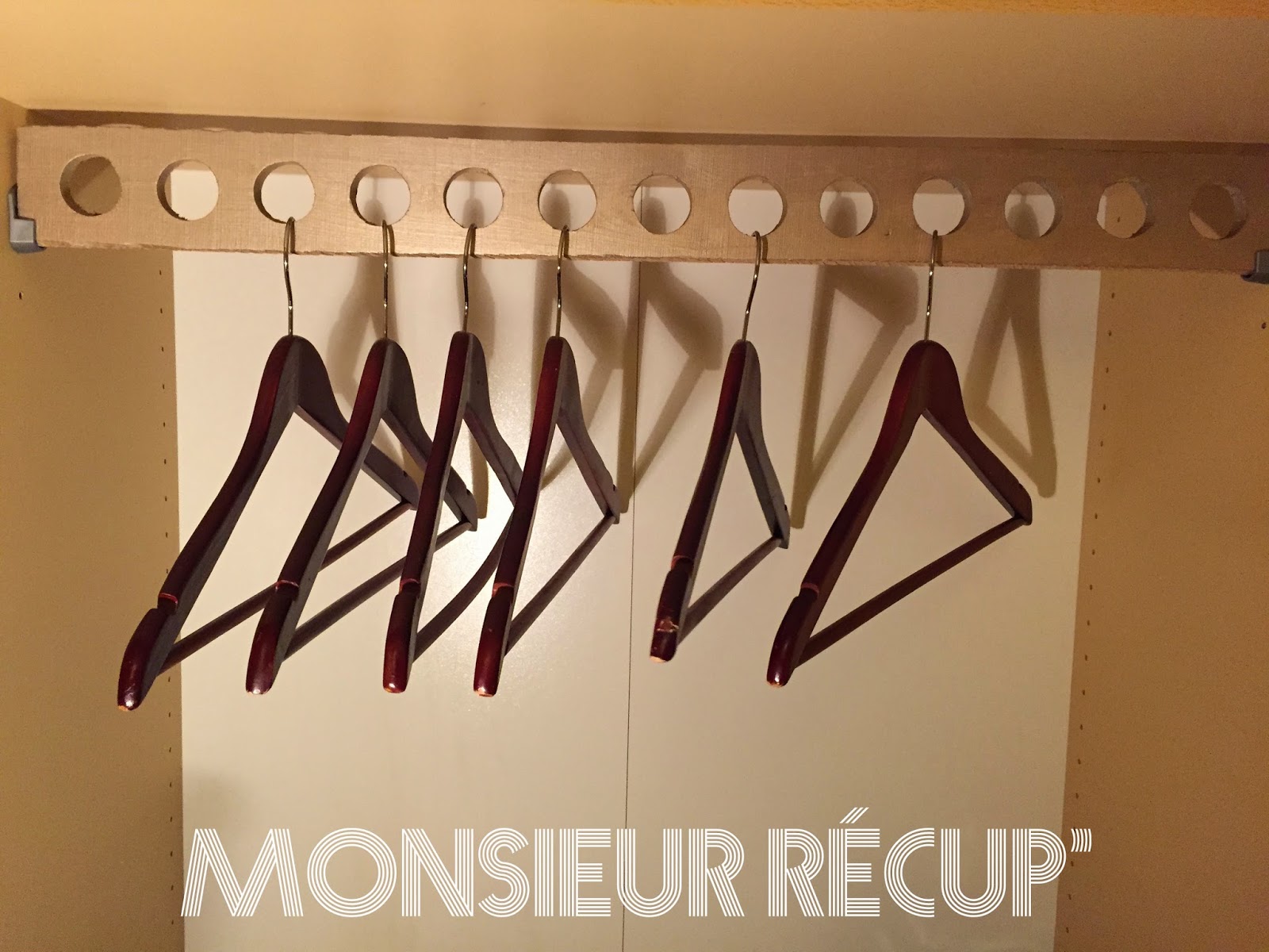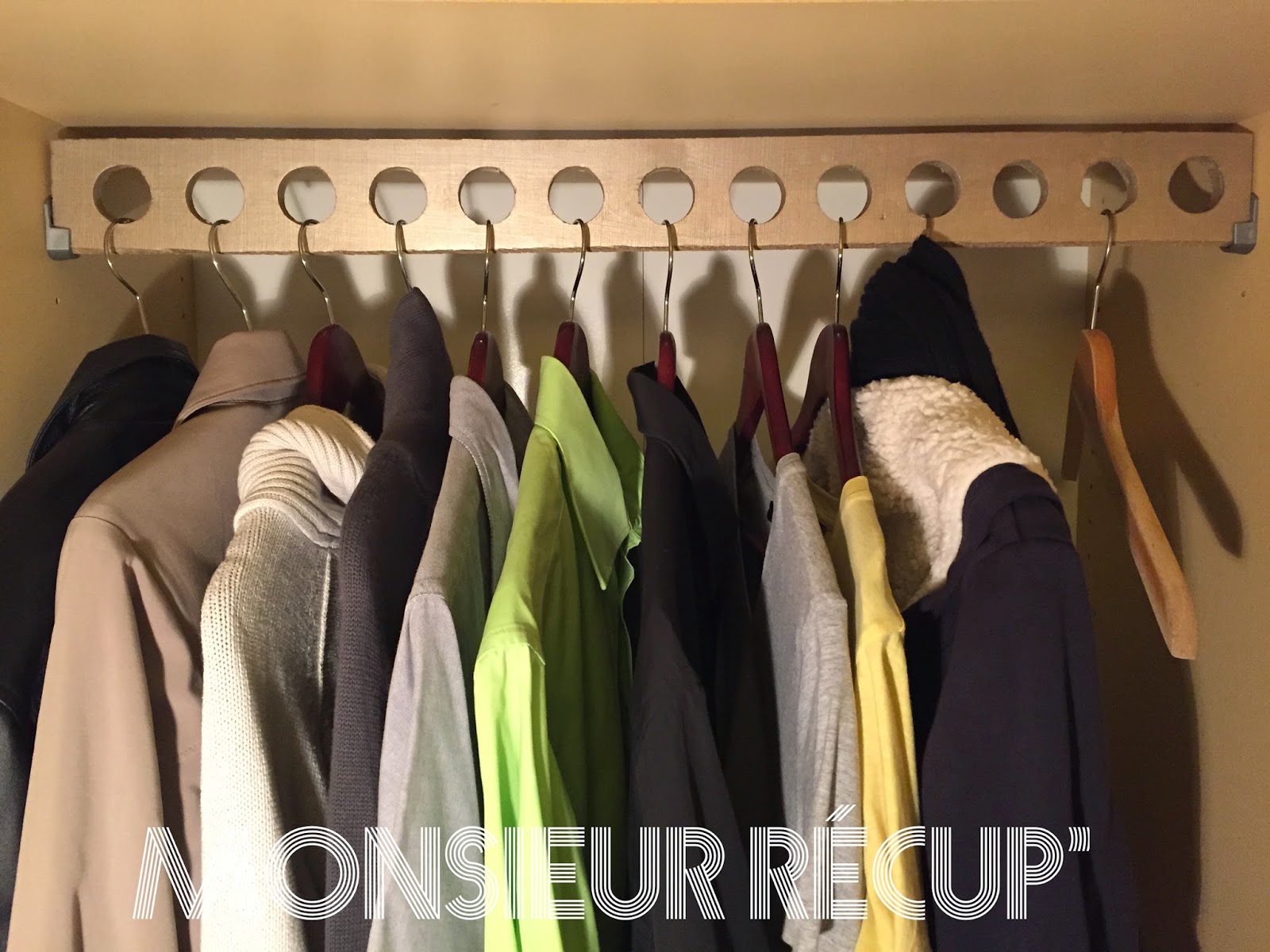 très sympa cette idée et décorative, on peut aussi y penser pour les aménagements de véhicules ! et c'est top pour une entrée sans que ça fasse porte manteau , mais si on met les cintres uniquement quand on reçoit ....Bravo encore une fois .....